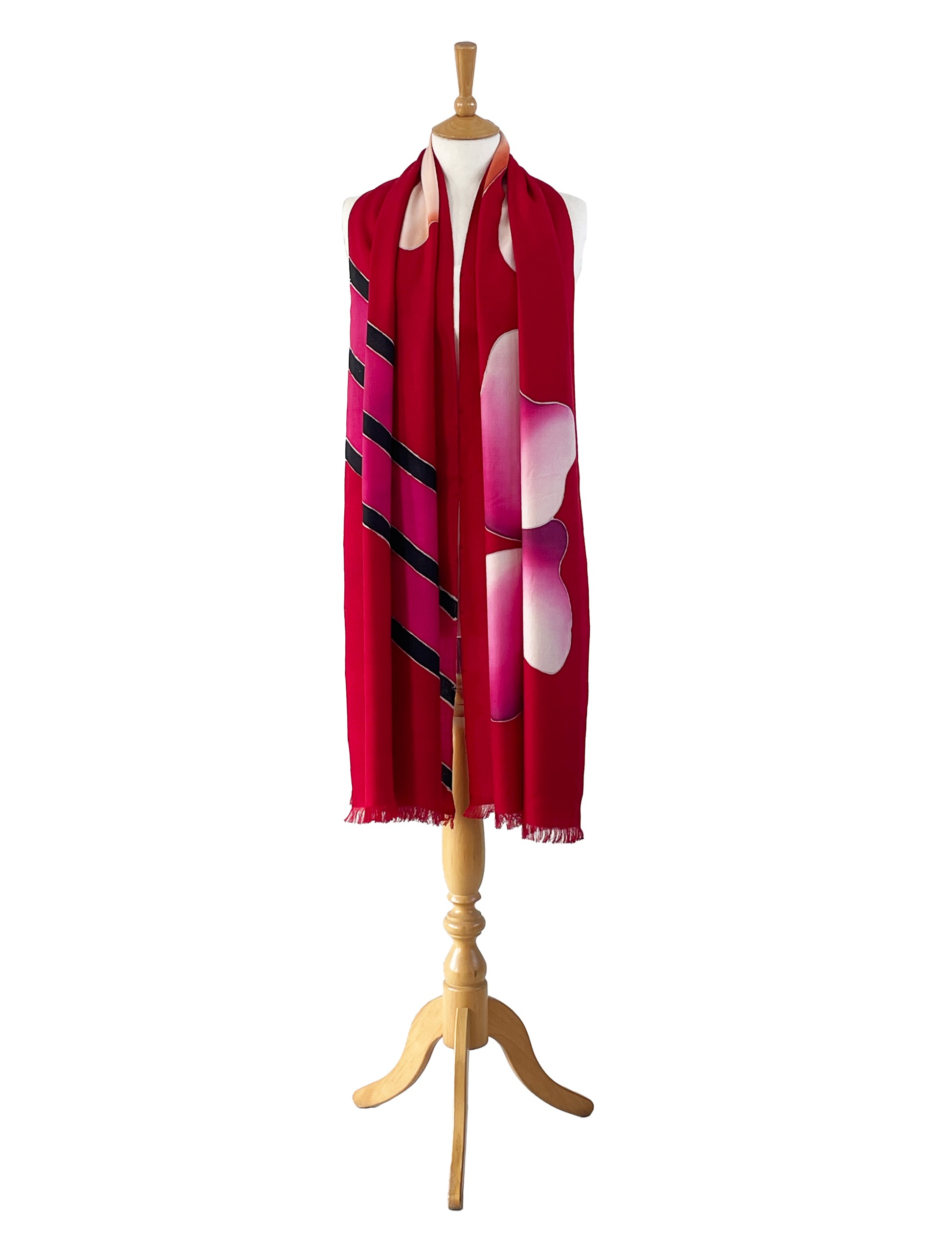 Gorgeous flax flowers in Pink and Orange handpainted against beautiful Crimson Red background