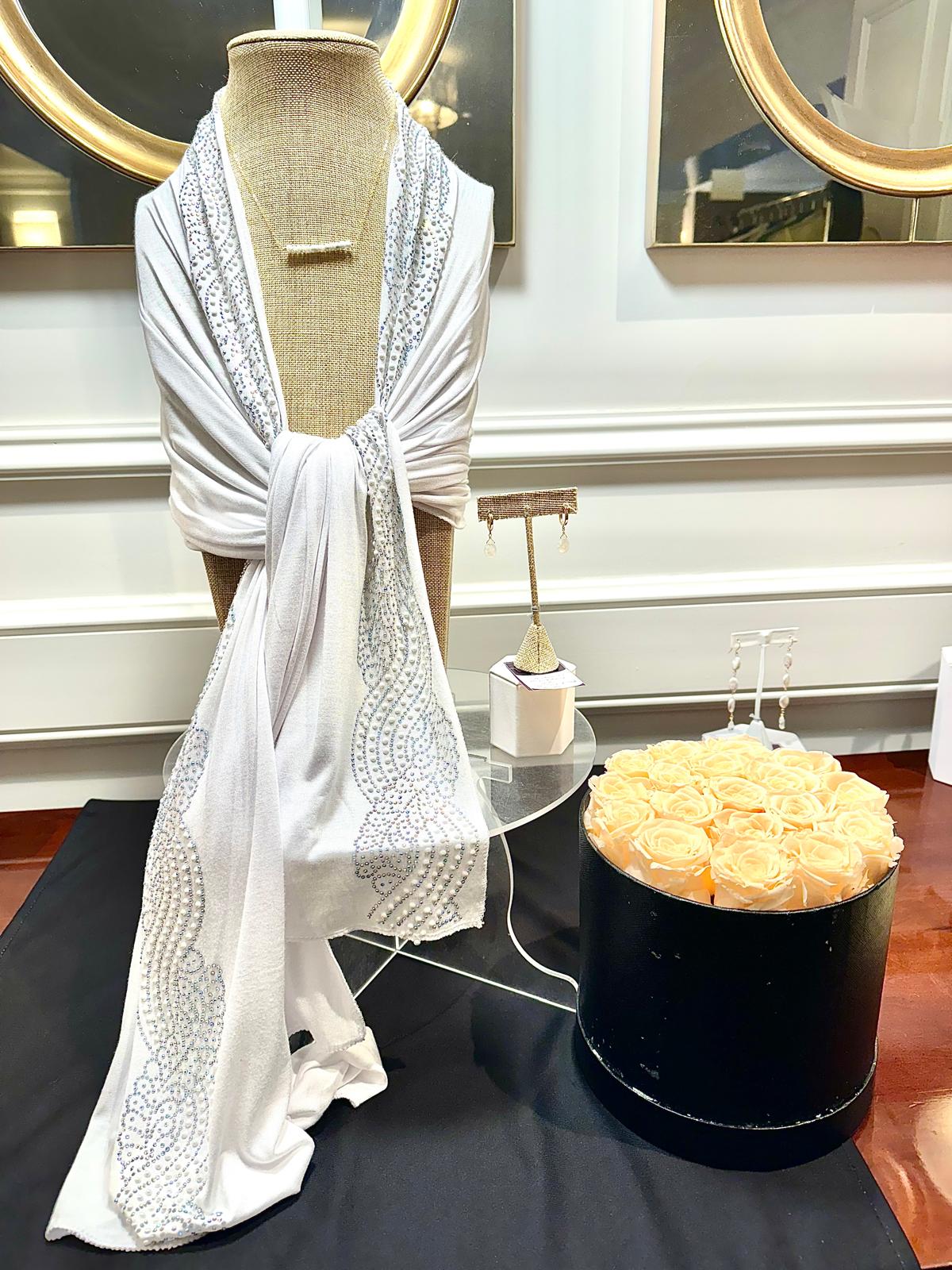 Beautiful glitter on the border, makes this a perfect summer party shawl.