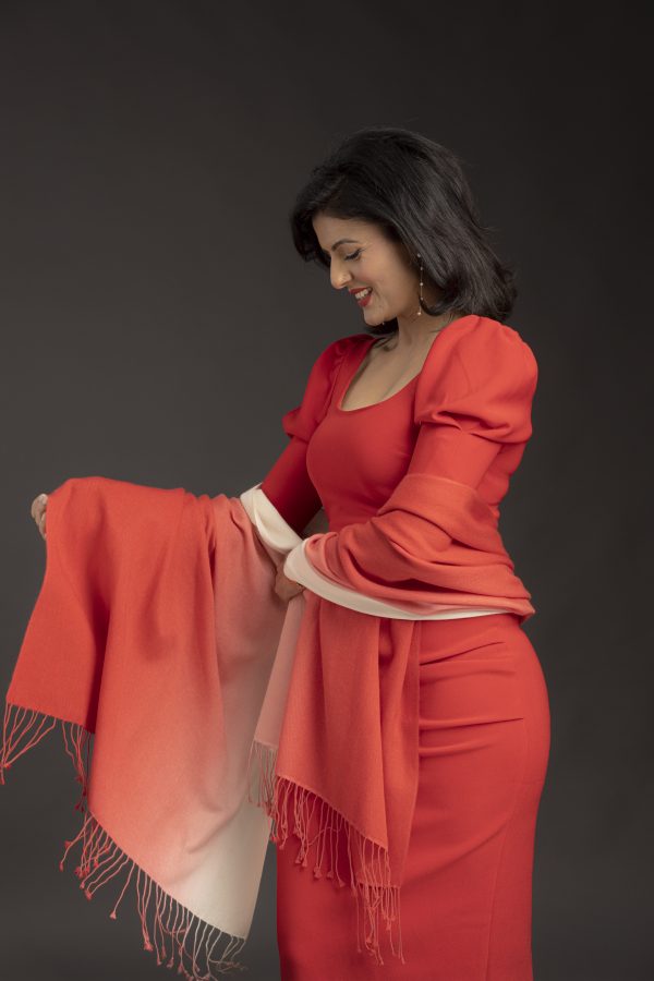 We love how versatile the shaded shawls are! All season Handloomed Himalayan Cashmere & Silk blend.
