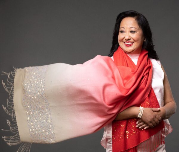 Simply stunning Party Shawl. Shades of beautiful red fades to white.